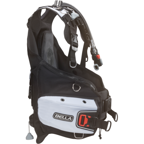 The Bella is designed and tailored for female divers who prefer the comfort and security of a full-featured, front-adjustable BCD. Restyled for 2023, the Bella features new larger cargo pockets, a new integrated weight system design, upgraded backpack padding and a striking white color scheme. Loaded with convenience and performance features, the Bella’s exclusive wraparound bladder retains its cradle-like shape even when fully inflated, providing a comfortable fit and stable position both at depth and on the surface. It also sports a Y-Fit shoulder design that fits the female body better, allowing for excellent control and increased range of motion for the arms. A stainless steel triangular ring manages the forces in the Y’s center, balancing pressure over the body and keeping the harness under control, regardless of your position in the water. This makes for a comfortable and secure ride while cruising the depths.